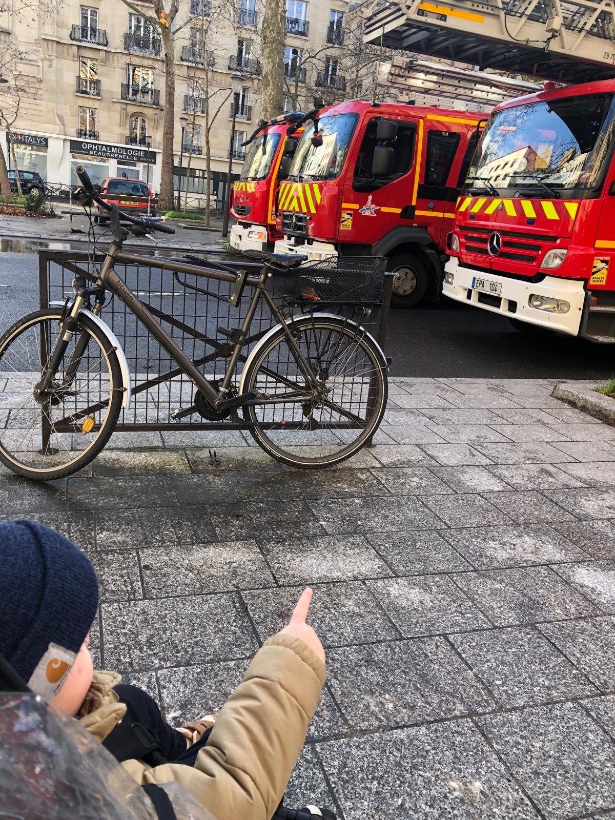 His love of trains has deepened, as well as his love of firetrucks. He now associates firetrucks with the French “pin-pon, pin-pon” siren, and will deepen his voice and say “BIG FI-UH TWUCK” when he sees one.