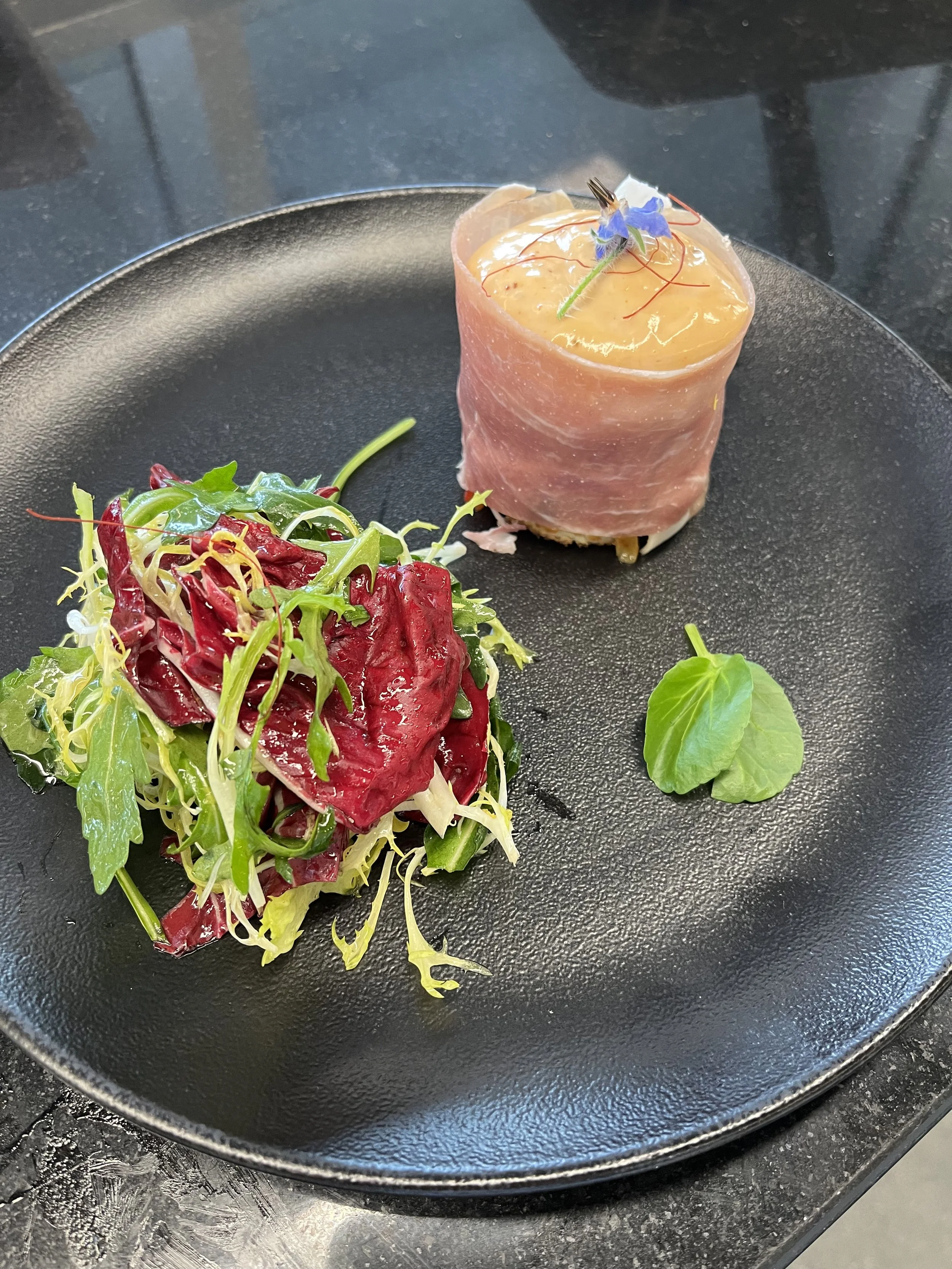 While Di was here, Katy and I got to go on a date. We had dinner at a really interesting spot near us in the 15th, La Véraison. They offered both a la carte and a menu formule (essentially a set menu) and given that we weren’t trying to quickly eat while also entertaining a toddler who would probably have no interest in sitting at the table as long as we did, we got the set menu. It went something like: