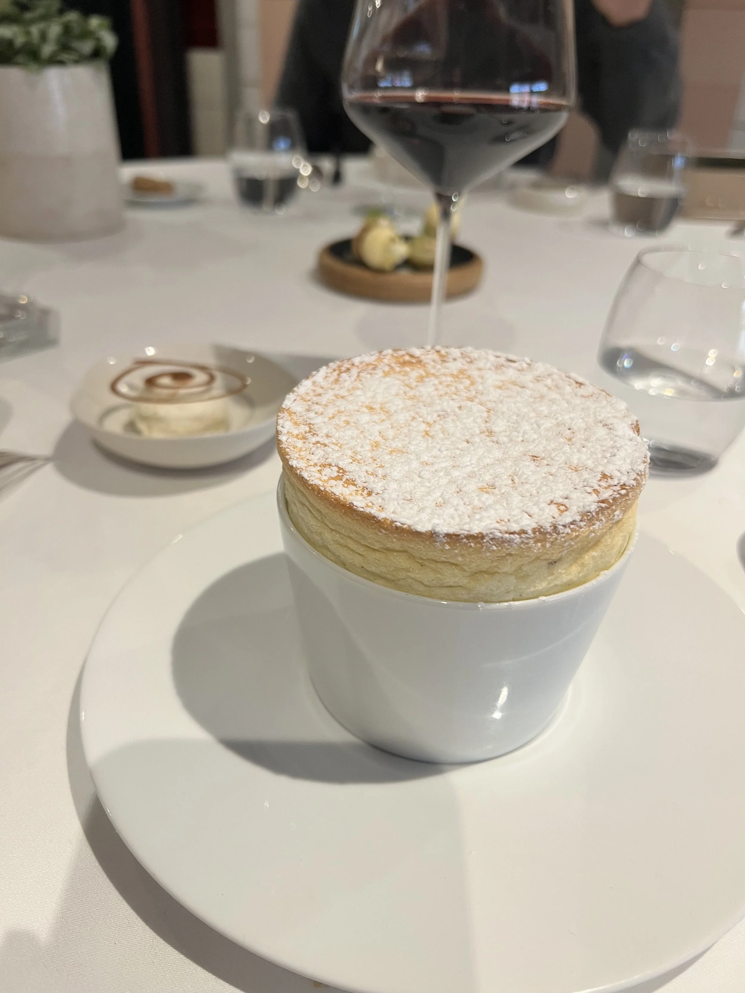 Katy’s dessert: a passionfruit and rhum soufflé. I scored my lowest score so far in culinary school on a day I cooked a soufflè, but it sounds like I’m going to get better because Katy has requested I make this every day for the rest of her life. A soufflé (a real one, not the midwestern “casserole-called-soufflé” dish) is light, airy, and incredibly delicate. This one had a tartness brought on from the passionfruit throughout.